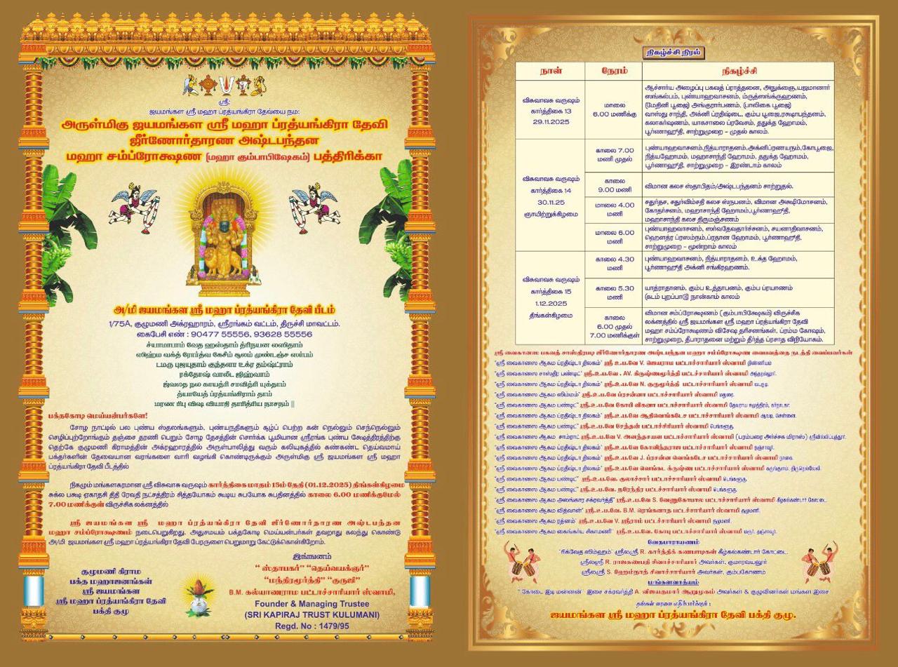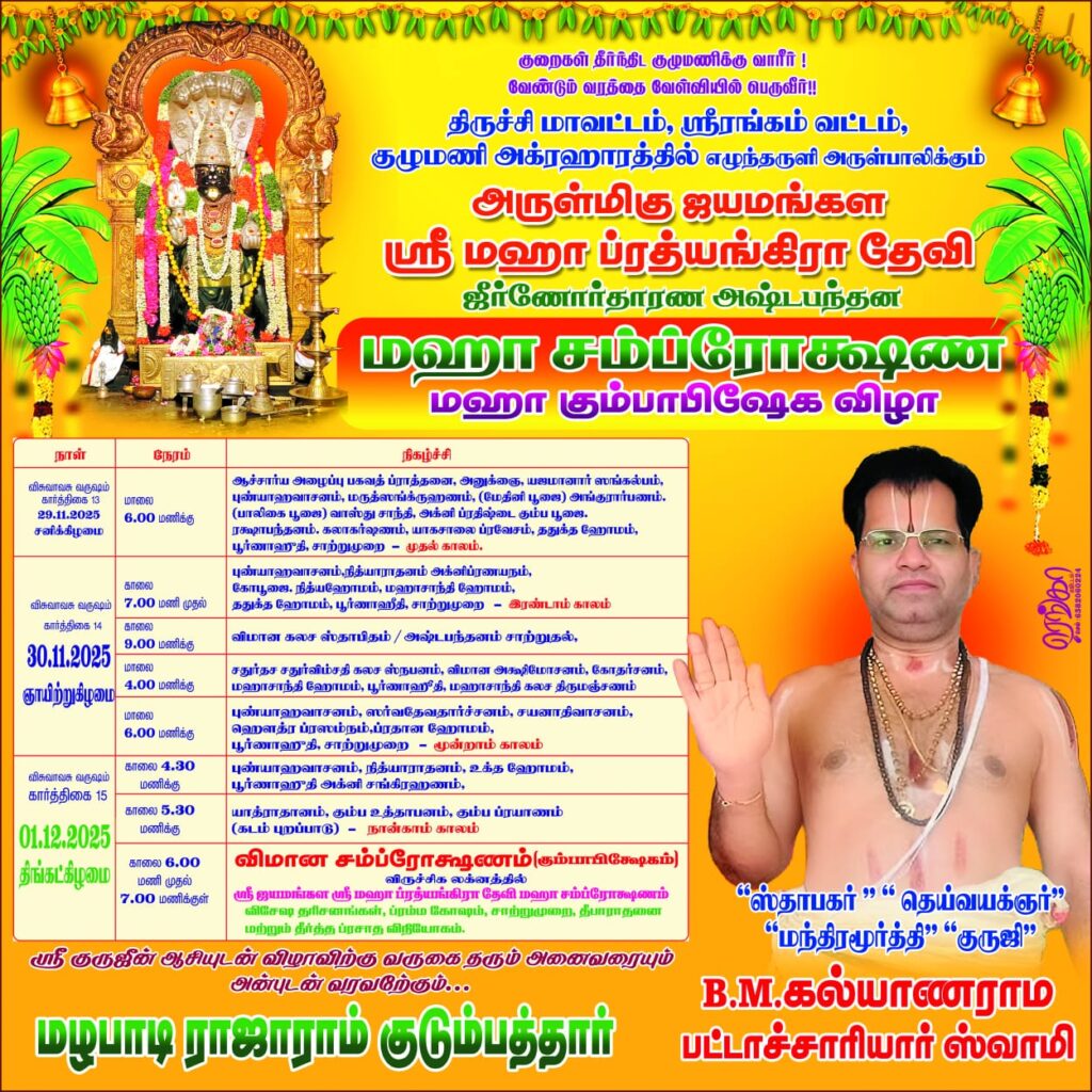 ஜயமங்கள ஸ்ரீ மஹா ப்ரத்யங்கிரா தேவி பிரதிஷ்டை செய்யப்பட்டு, மஹா