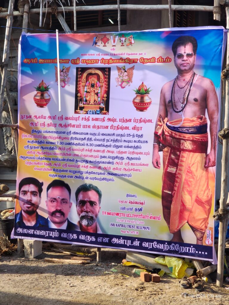 08.06.2025 அன்று வலம்புரி சக்தி கணபதி அஷ்டபந்தன பிரதிஷ்டை மற்றும் ஸ்ரீ குபேர ஆஞ்சநேயர் பாலஸ்தாபனம் நிகழ்ச்சி நடைபெற்றது.